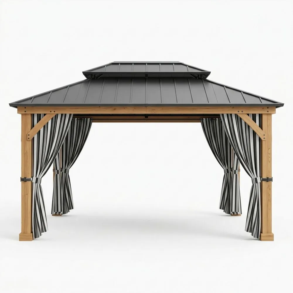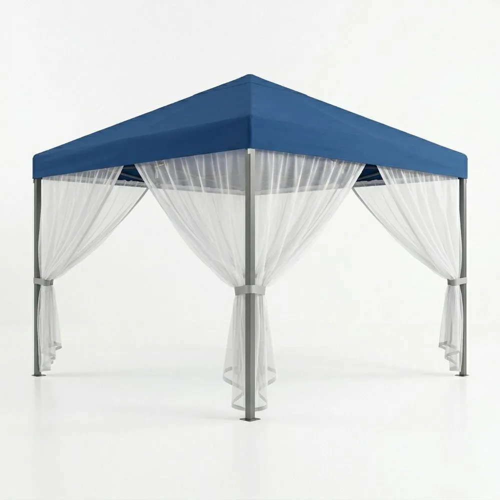 Questo gazebo blu da esterno presenta un classico design ottagonale con tende leggere e trasparenti, che offrono ombra e riparo dalla pioggia, creando al contempo uno spazio relax ben ventilato e confortevole. È la scelta ideale per riunioni in giardino e momenti di relax in cortile.