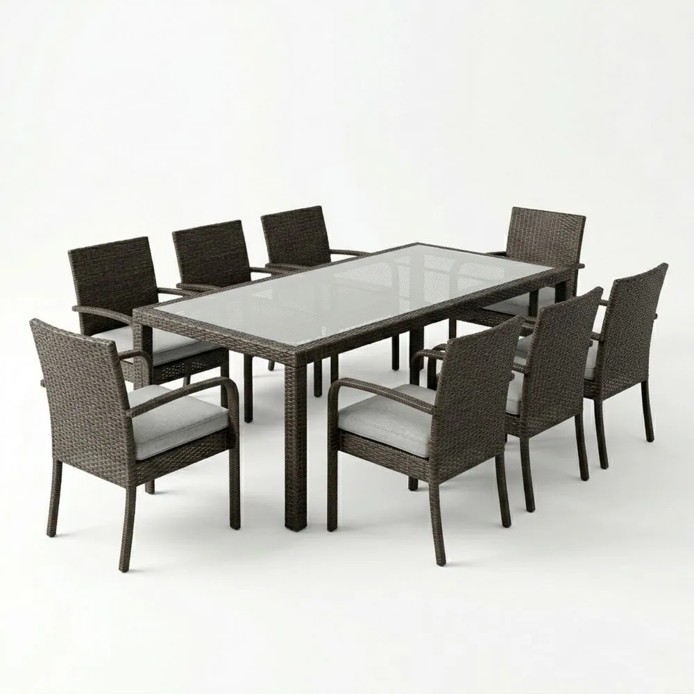 Set da pranzo da giardino in rattan con 8 sedie e piano in vetro temperato