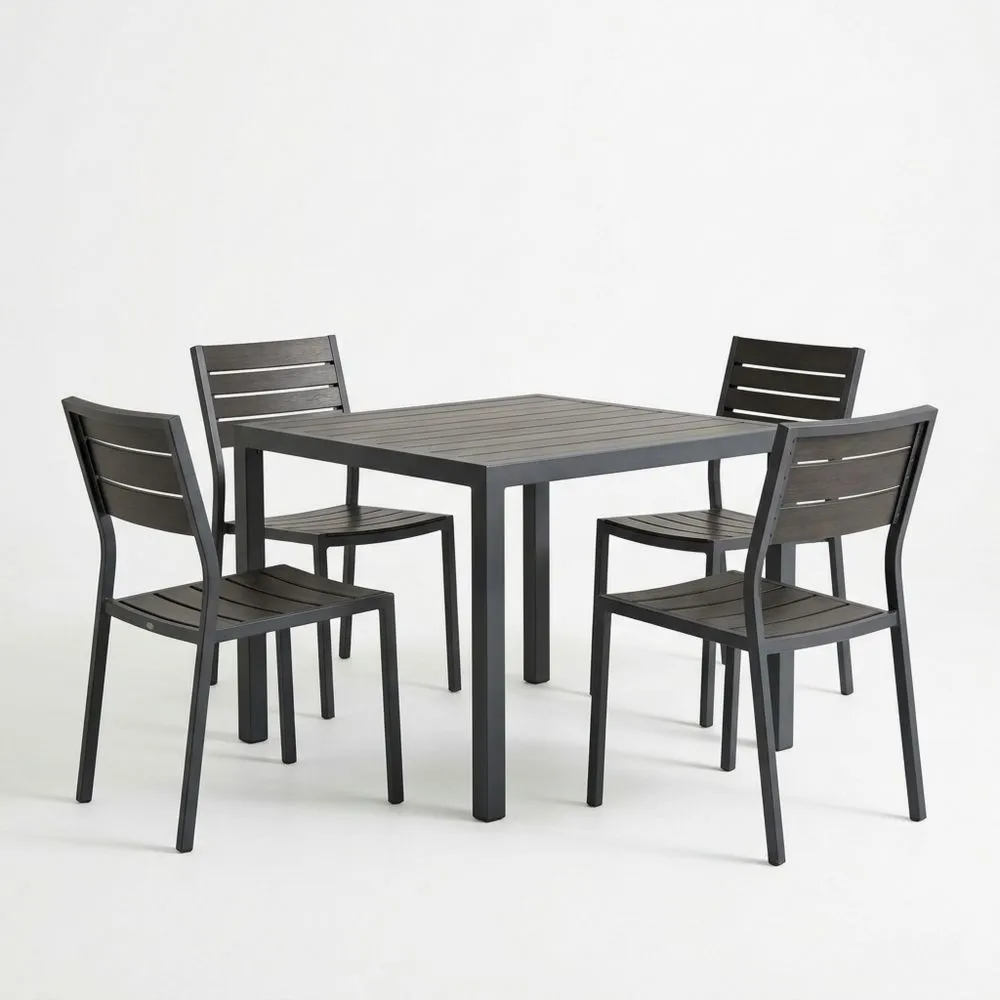 Set da pranzo da esterno con tavolo e 4 sedie in alluminio e legno composito