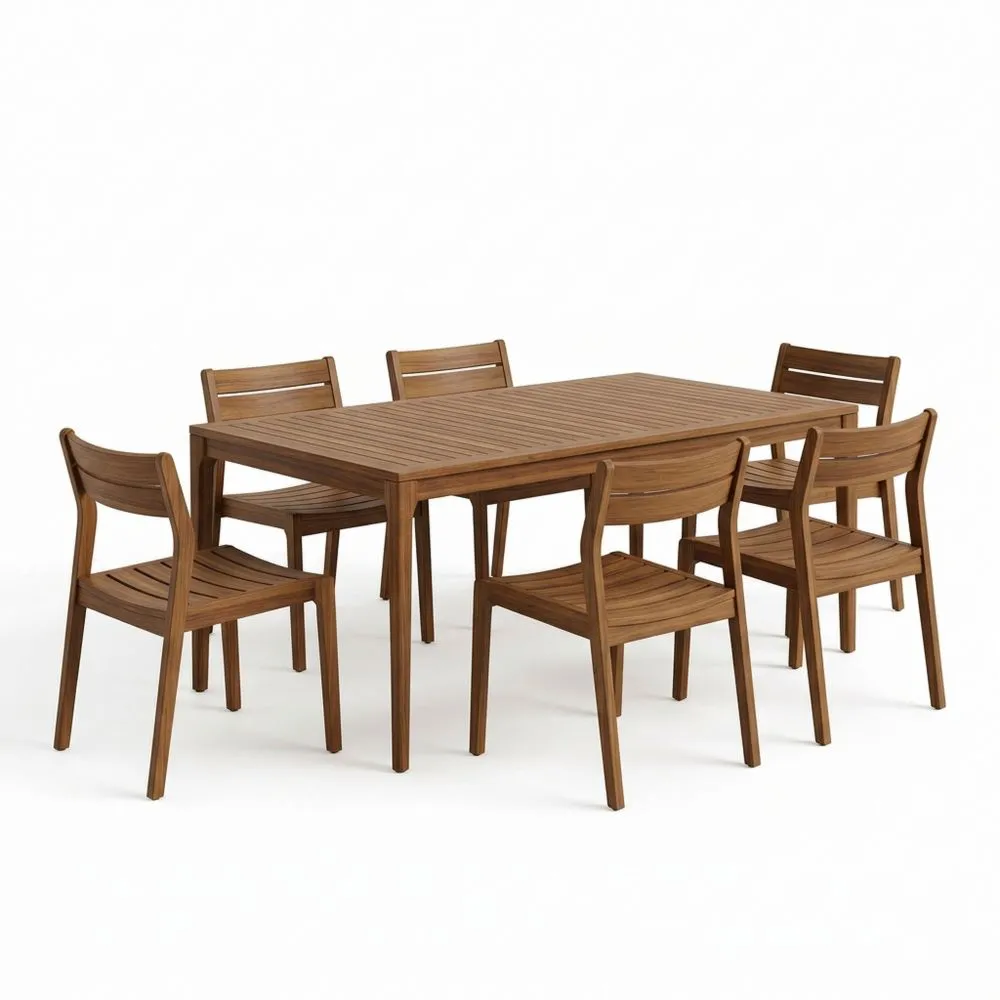 Set da pranzo con tavolo e 6 sedie in legno di acacia marrone