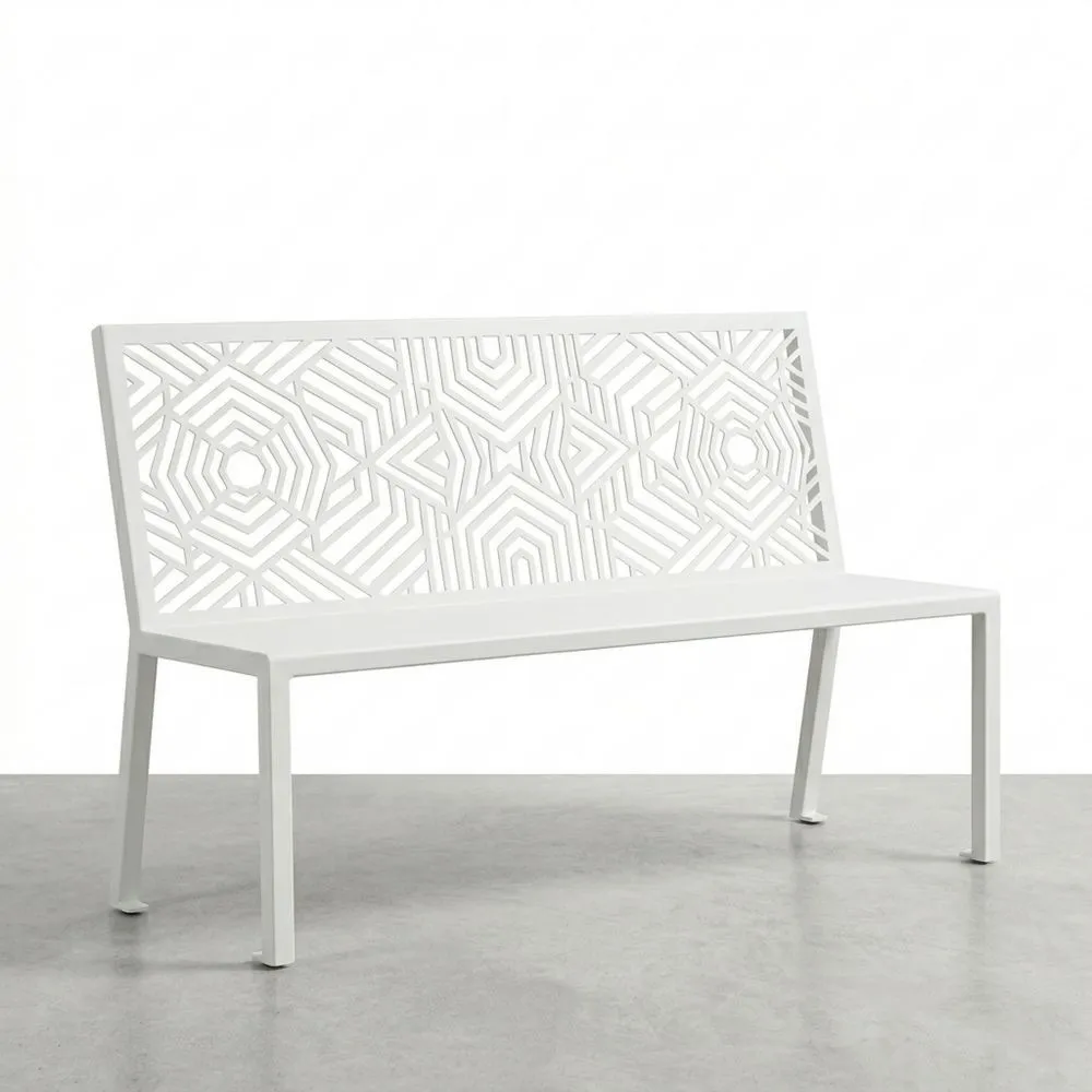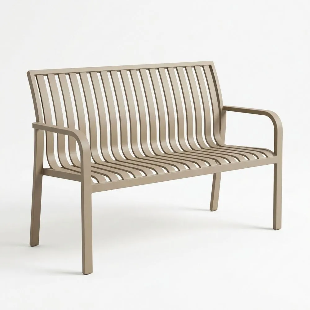 Panchina in alluminio verniciato sabbia, 128 × 59 × 79 cm (L × P × H)