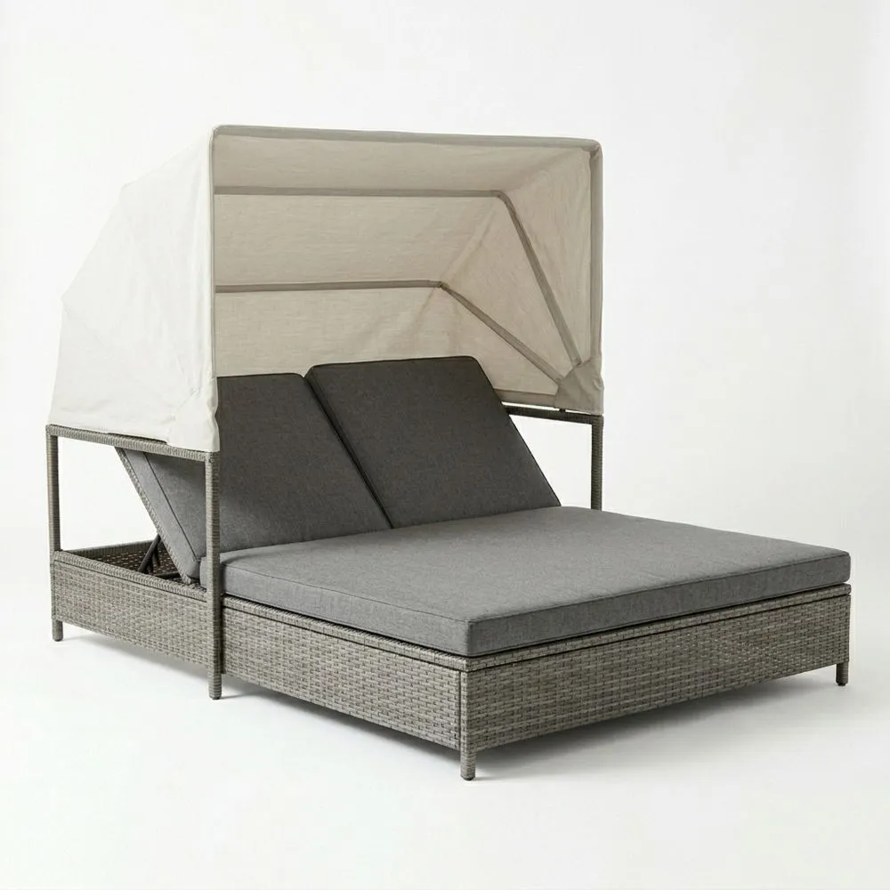 Lettino da Giardino con Baldacchino in Rattan Sintetico Grigio