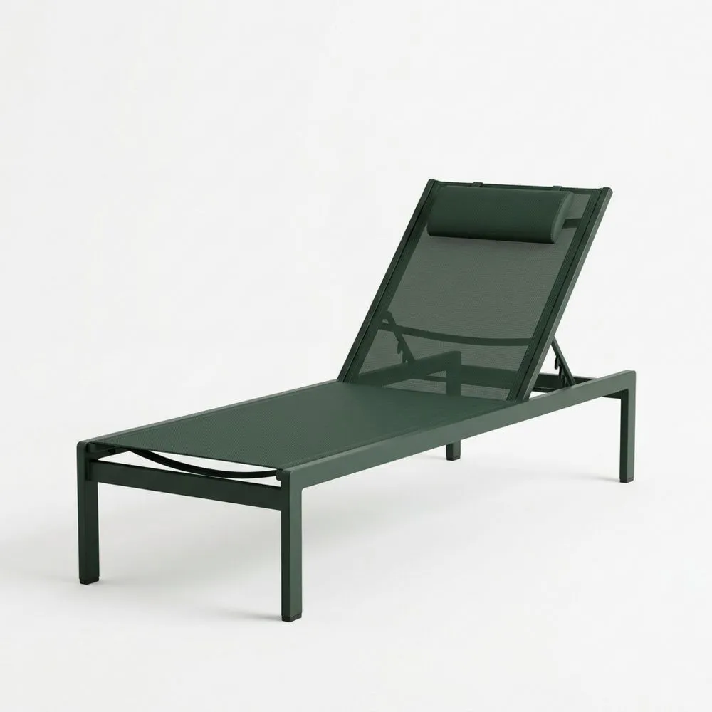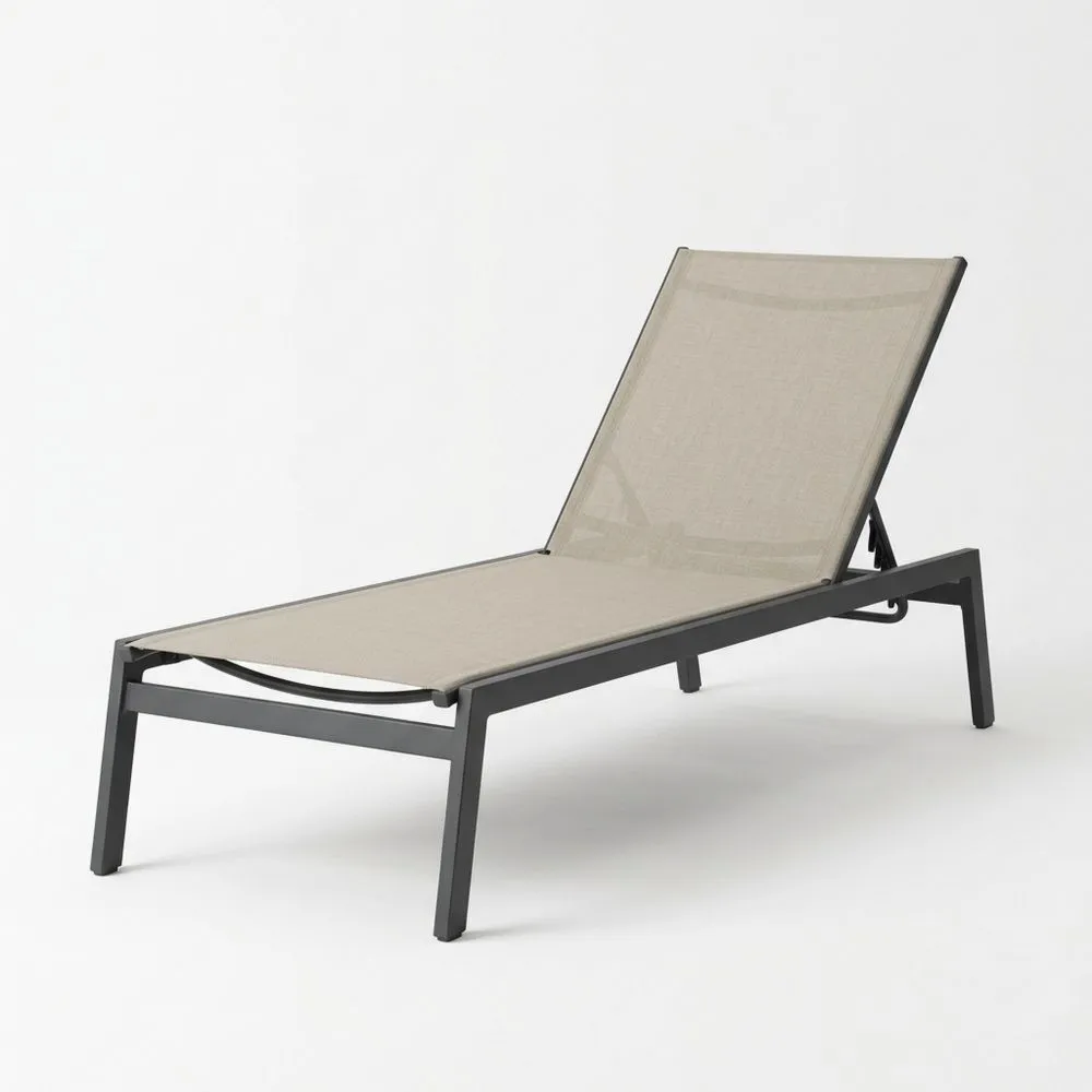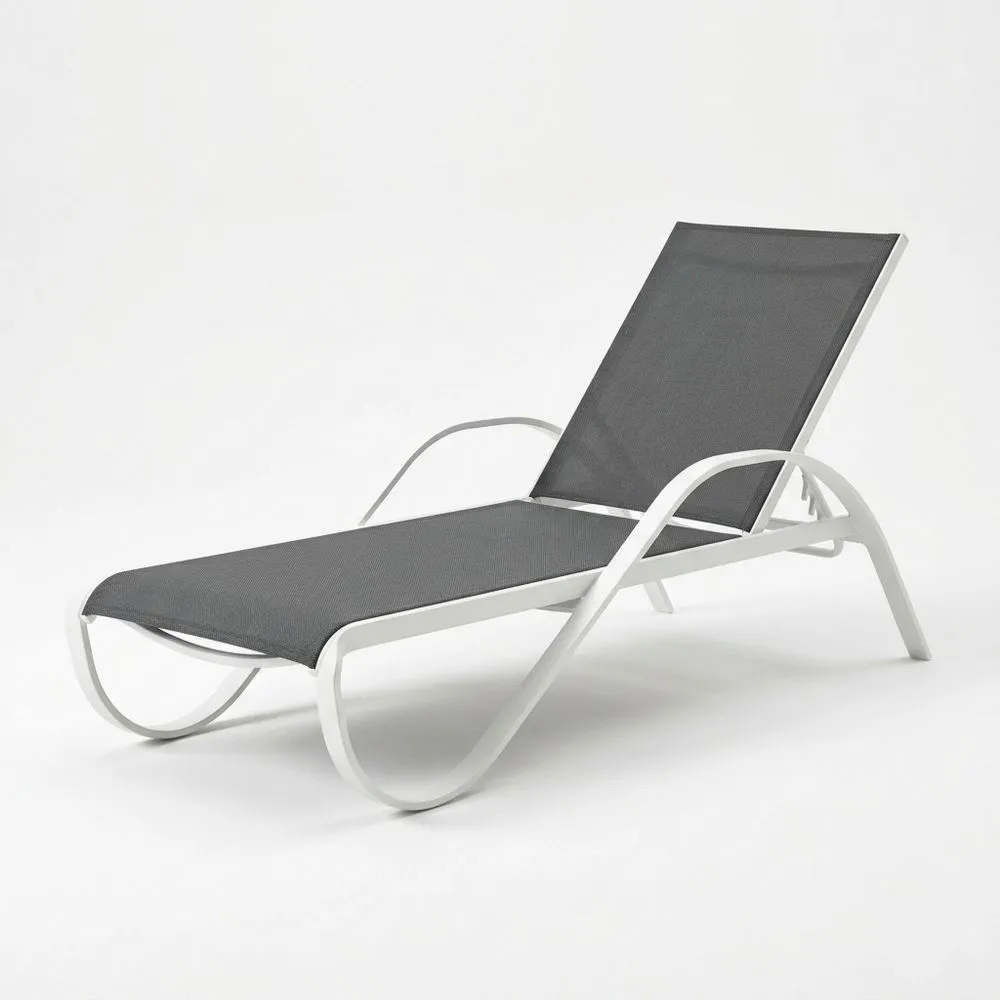 Sdraio Chaise Longue in Alluminio e Tessuto Textilene Grigio