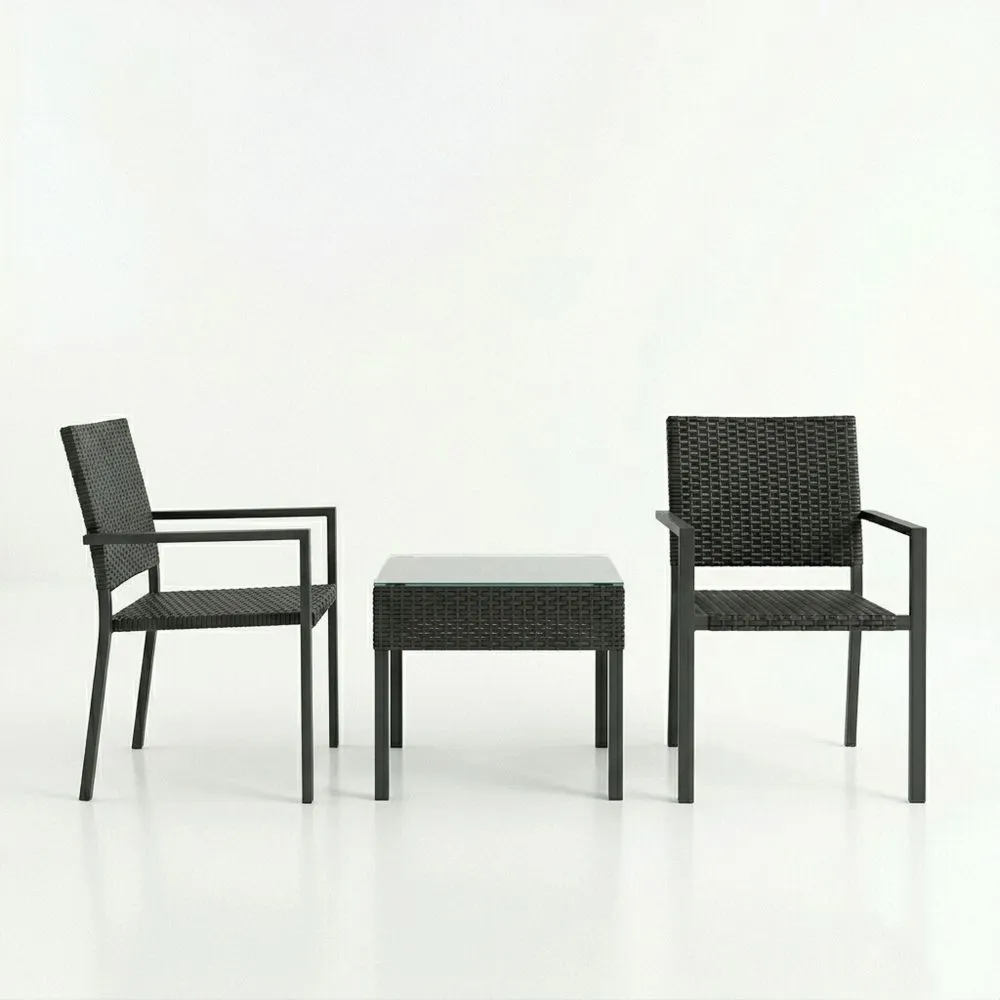Set sedute relax da giardino in rattan sintetico con tavolo in vetro temperato