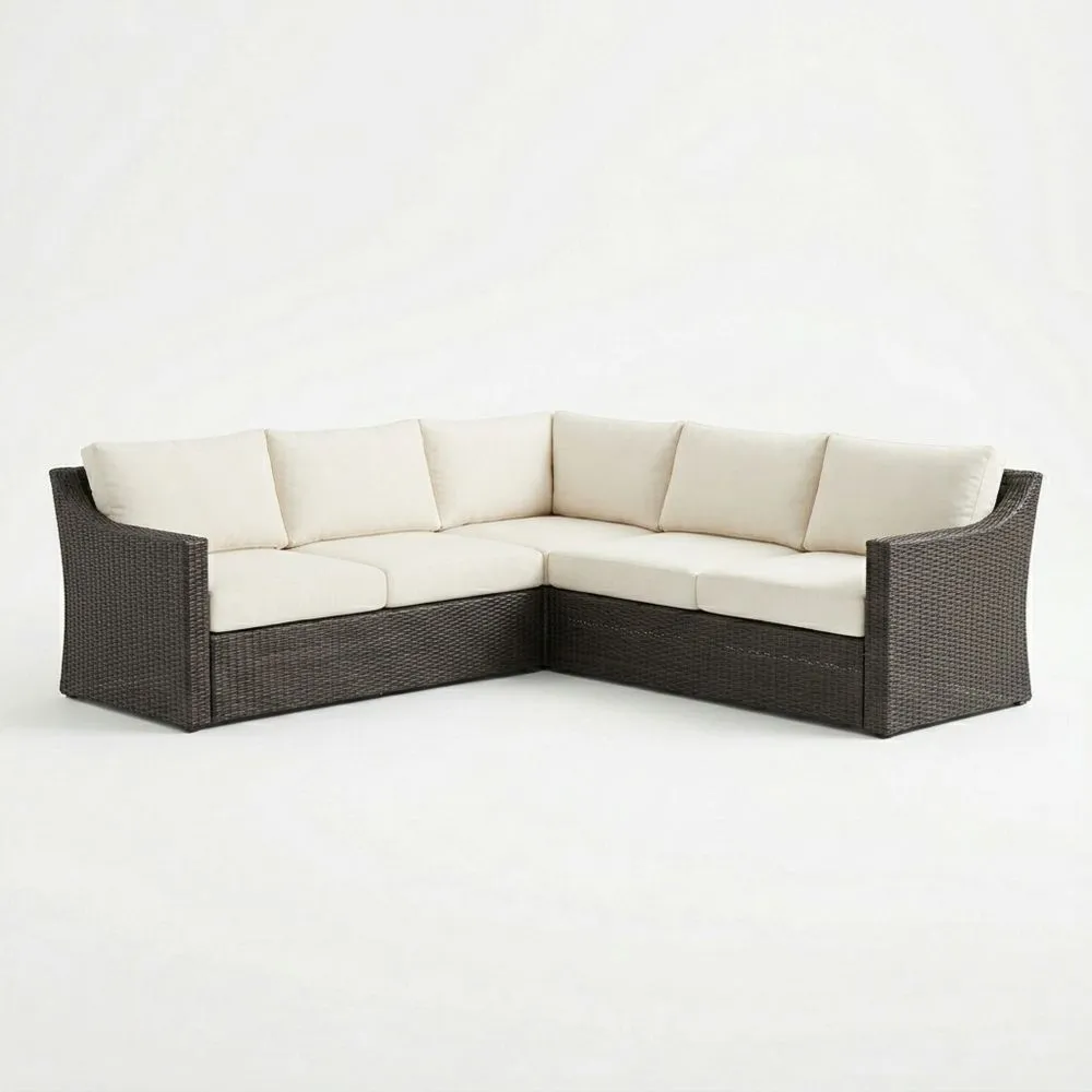 Struttura in rattan sintetico. Cuscini seduta e schienale con rivestimento in poliestere e imbottitura in schiuma poliuretanica.