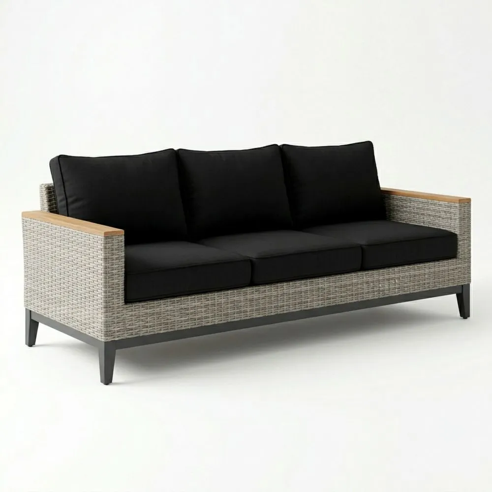Colori: Rattan grigio, cuscini neri.