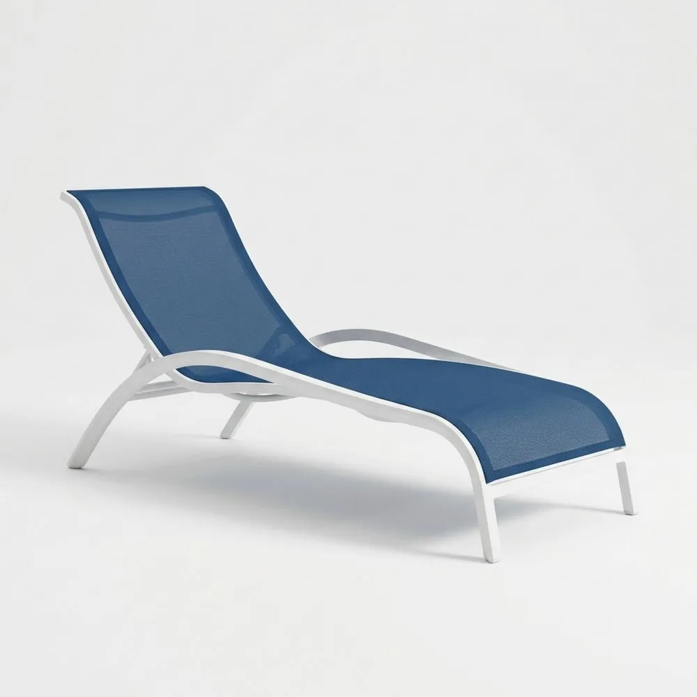 Lettino Prendisole in Alluminio con Tessuto a Rete Blu