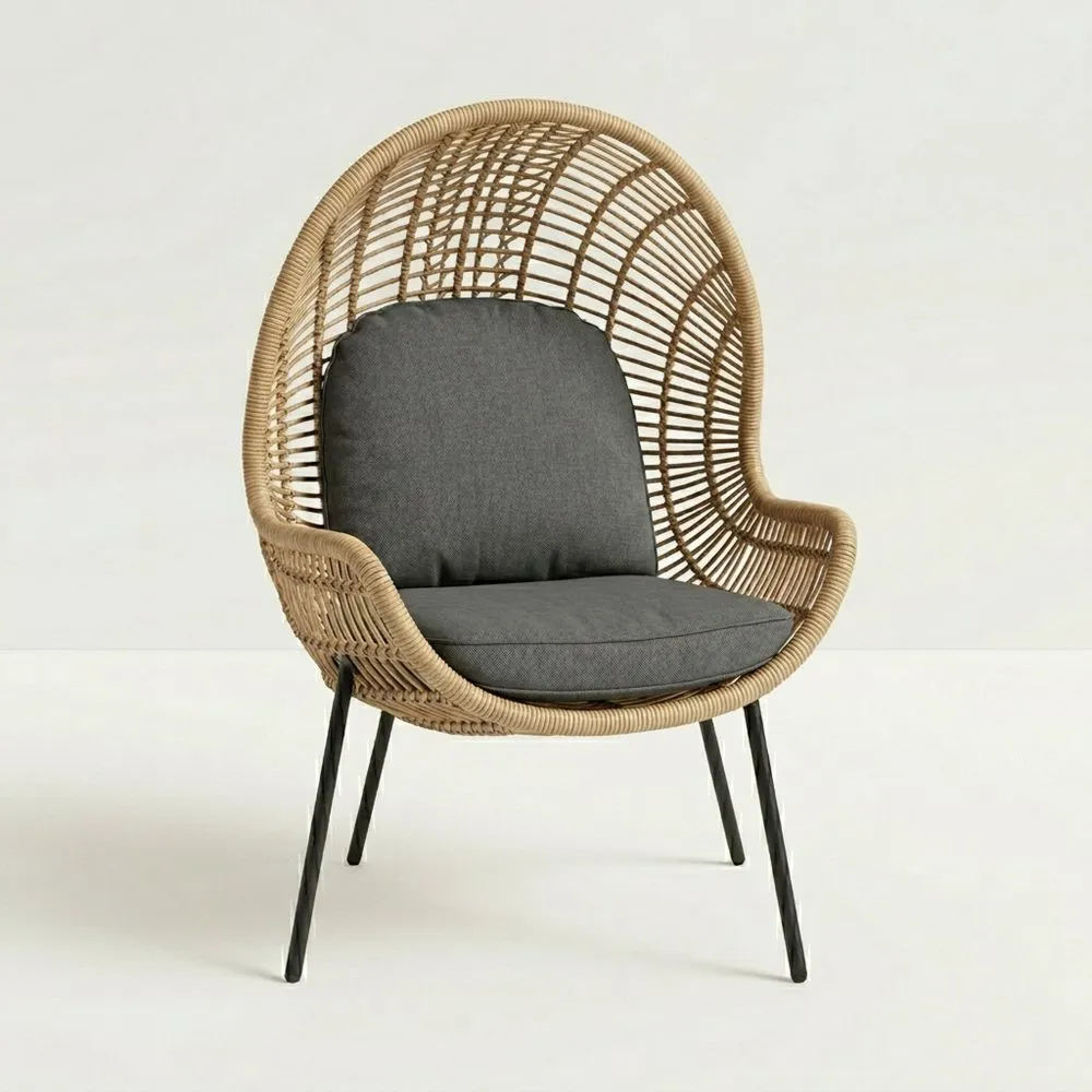 Sedia in Rattan Sintetico con Cuscino Grigio