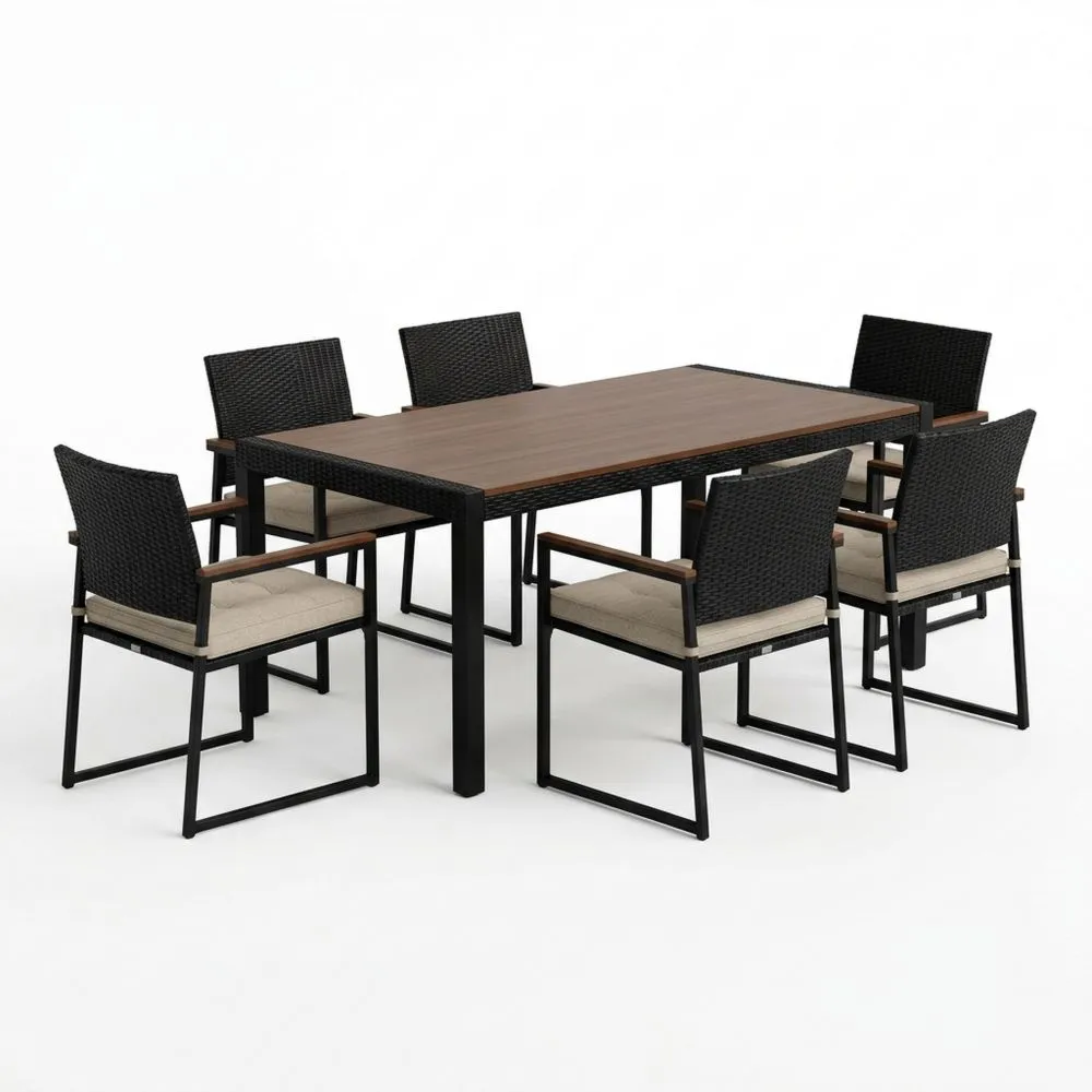 Set da pranzo composto da un tavolo e sei sedie adatto per esterni.