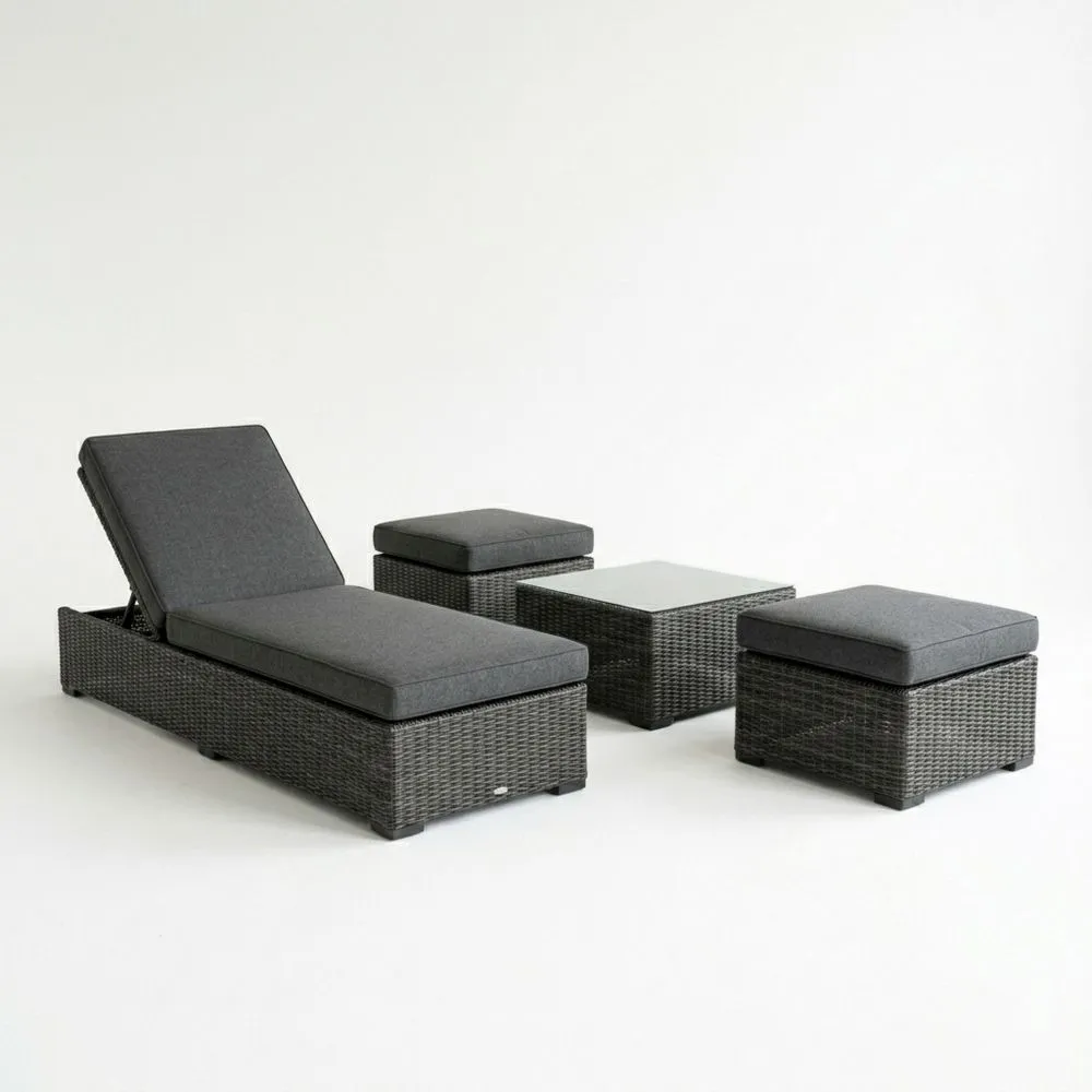Set sedute relax da giardino in rattan sintetico con tavolino in vetro e lettino